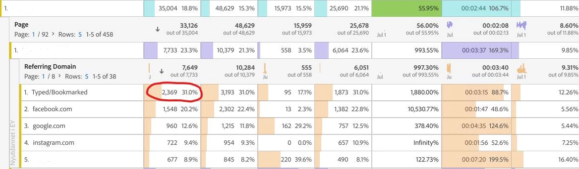 I've been encountering a significant uptick in traffic labeled as "Bookmarked/Typed" within Adobe Analytics, and it's proving to be quite wrong. I'm seeking guidance on how to make sense of this situation. At the moment, the data seems rather unreliable, which is causing challenges in providing accurate reports to stakeholders and effectively addressing crucial internal projects. I'd greatly appreciate your best recommendations. Having been accustomed to the user-friendly and seamless nature of Google Analytics, I now find myself repeatedly investigating issues with Adobe Analytics. Any insights you could provide would be very helpful!