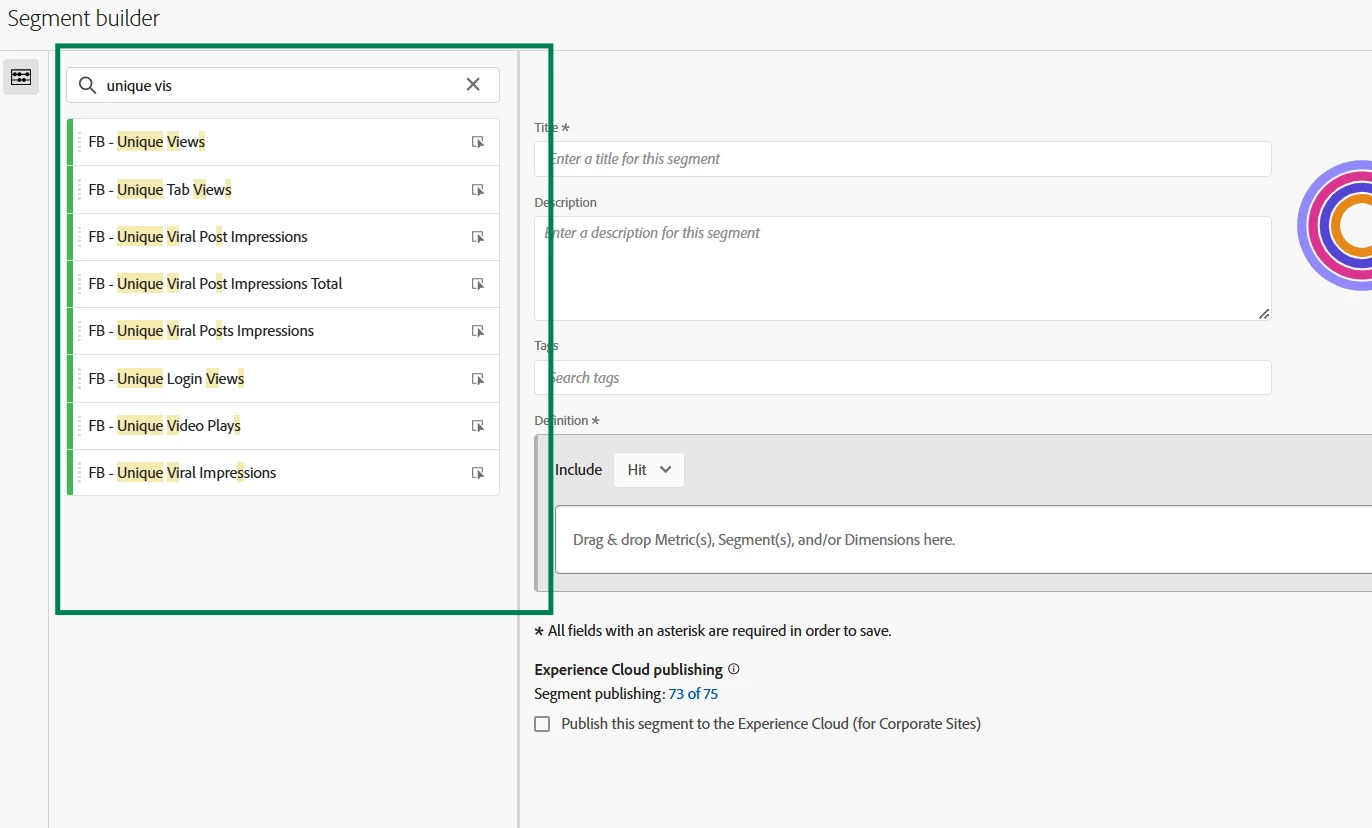 Since segment (and the sub containers) have scope (Hit, Visit or Visitor for AA / Event, Session or Person in CJA), there is no real need to have the Unique Visitor metric...
