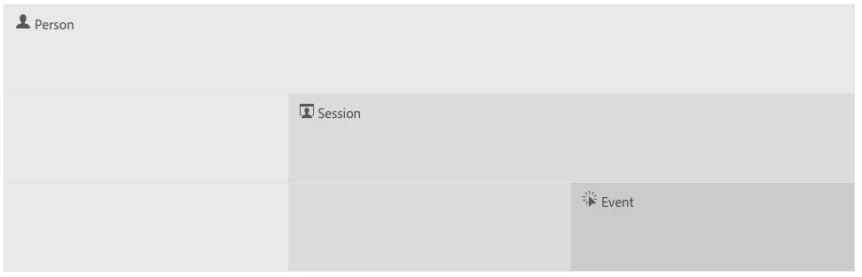 The Filter Builder uses a container boundary logical basis that defines a Person as the outermost and all-encompassing container. The Person container contains information that is specific to the individual across CJA sessions and events within the specific time frame. A Session container, nested within the Person container, allows you to set rules to break down the person's data based on bounded sessions. This is based on the session logic configured for the Data View against the overarching Connection. An Event container, also nested within the Person container, lets you break down individual person information based on individual tracked events. With each container, you can hierarchically report on a person's full behavior, interactions broken down by sessions, or narrow down to granular events.