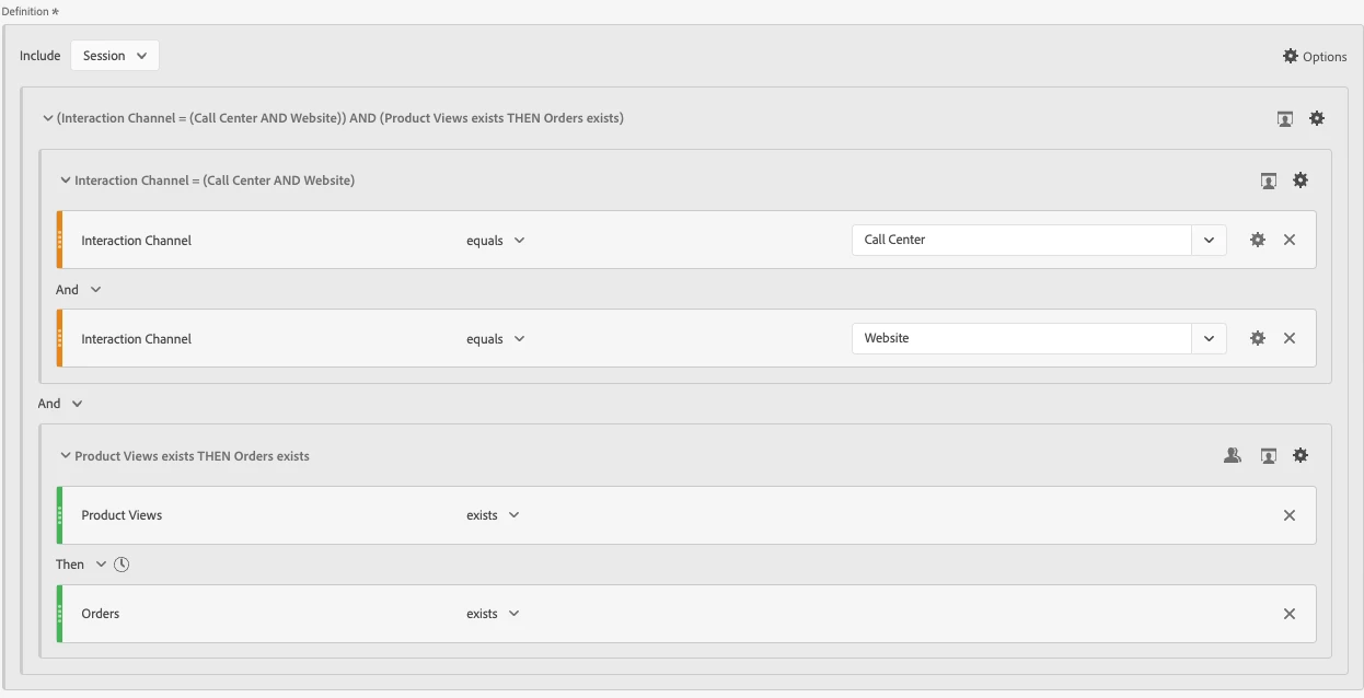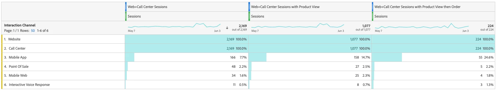 For example, suppose a user wants to analyze their customers' path to purchase within the context of specific platform activities. They can use sequential filtering to create a series of filters that segment customers based on their platform behaviors. The first filter might segment customers who visited both the website and called the call center within a session. The second filter might segment website and called the call center session customers who viewed a product. The third filter might segment website and called the call center session customers who viewed a product and then completed a purchase. This approach helps businesses understand the steps customers take before making a purchase and identify areas for optimization to improve the customer experience.