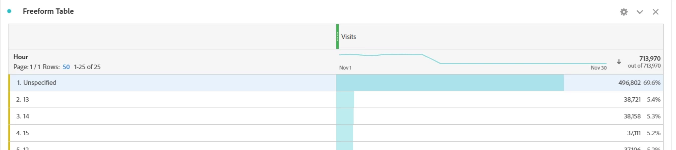 I have to analyze traffic splitted by hour, if I put in dimension Hour and in metrics visits I see that 70% of traffic is Unspecified, do you know why?