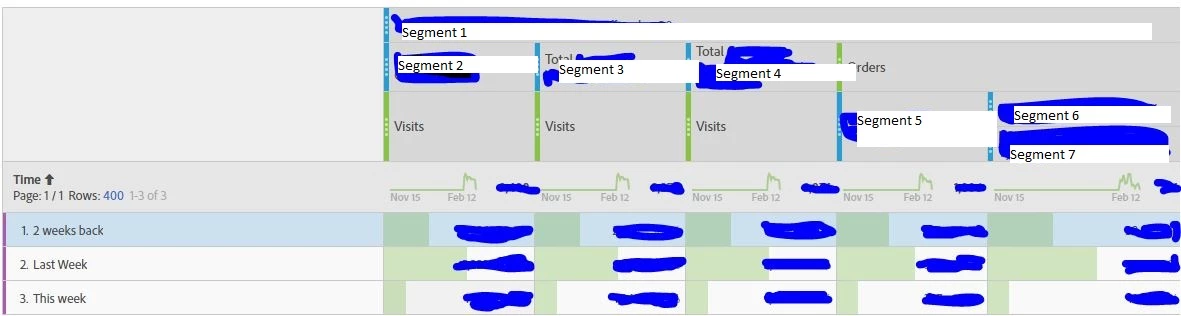 Current structure : Multiple segments and metrics that make it confusing.(cant show any data due to privacy)