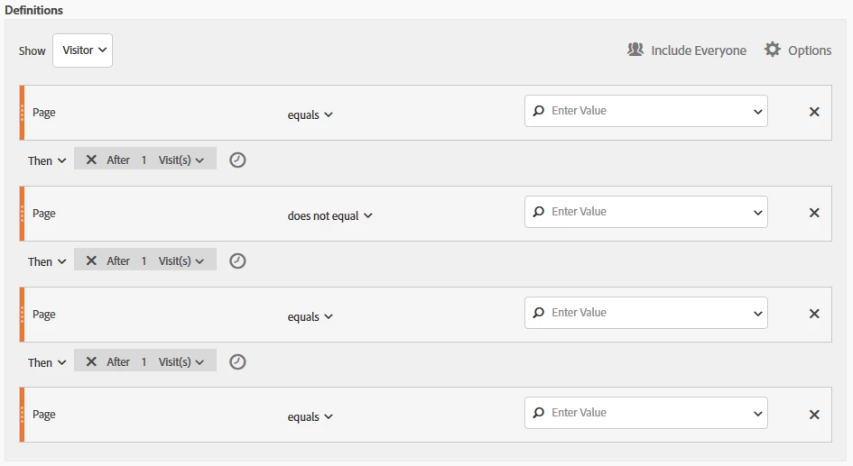 If I use the visit container in the segment builder, does the sequence defines Visit number with every condition/criteria: