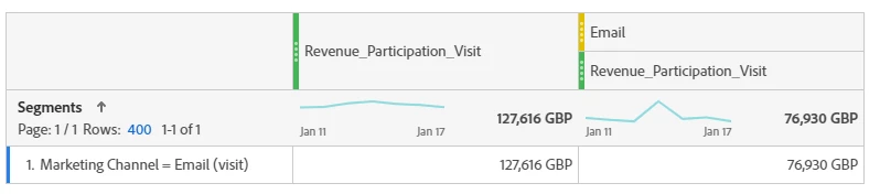 If I am looking at email channel and create a Visits based segment - revenue would be 100k.