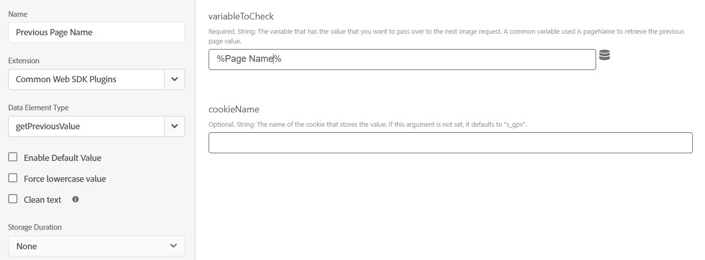 I created a Data Element using the following sample setup (see screenshot below). However, when I tried calling _satellite.getVar("Previous Page Name"), the returning value are always current Page Name value, and not the "Previous Page Name" value.