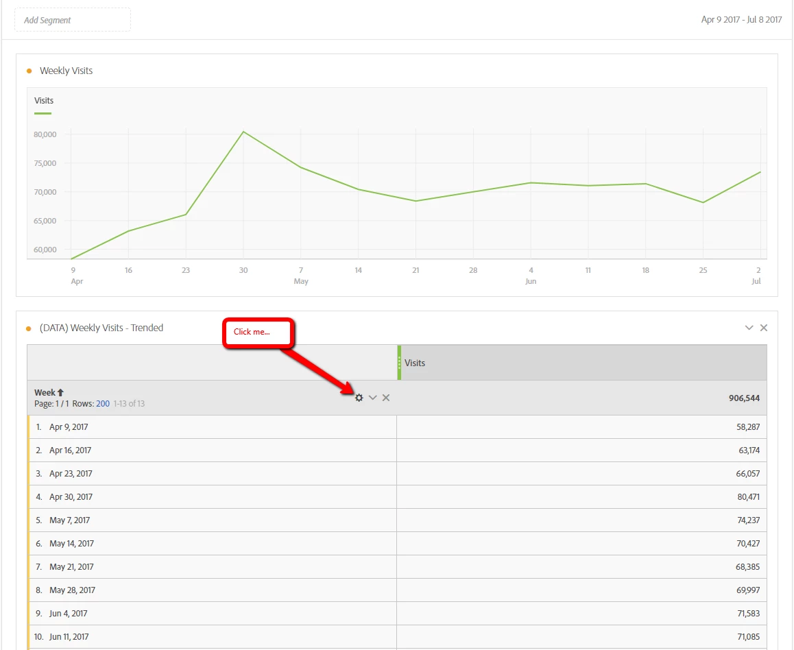 Click the Gear on the Data Table: