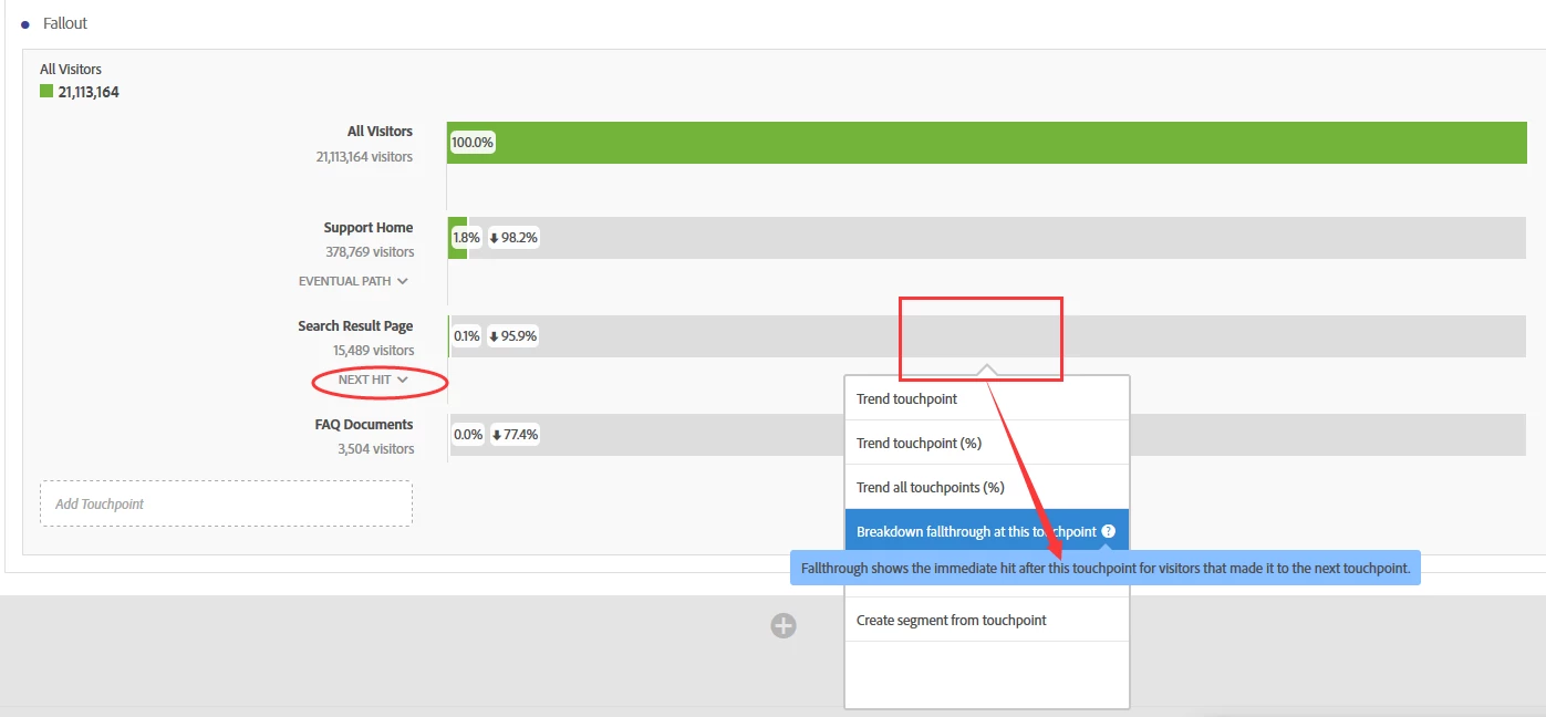 As far as I can understand, I select "Fallthrough" from "Search Result Page", which means, the breakthrough table built, would give me the page name IMMEDIATELY hit after Search Page.