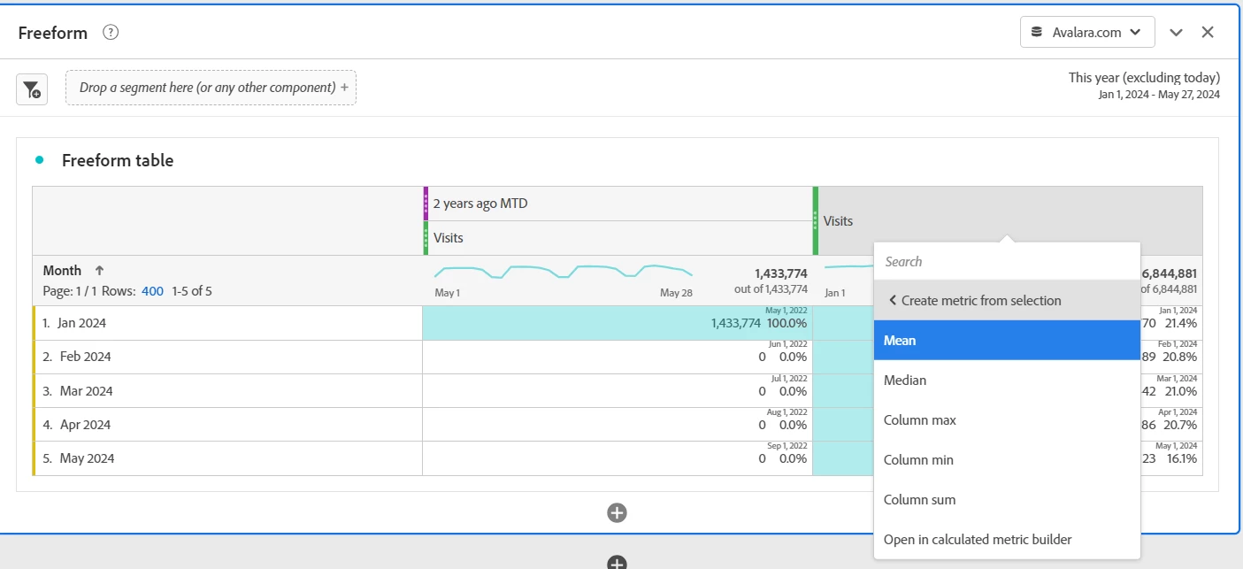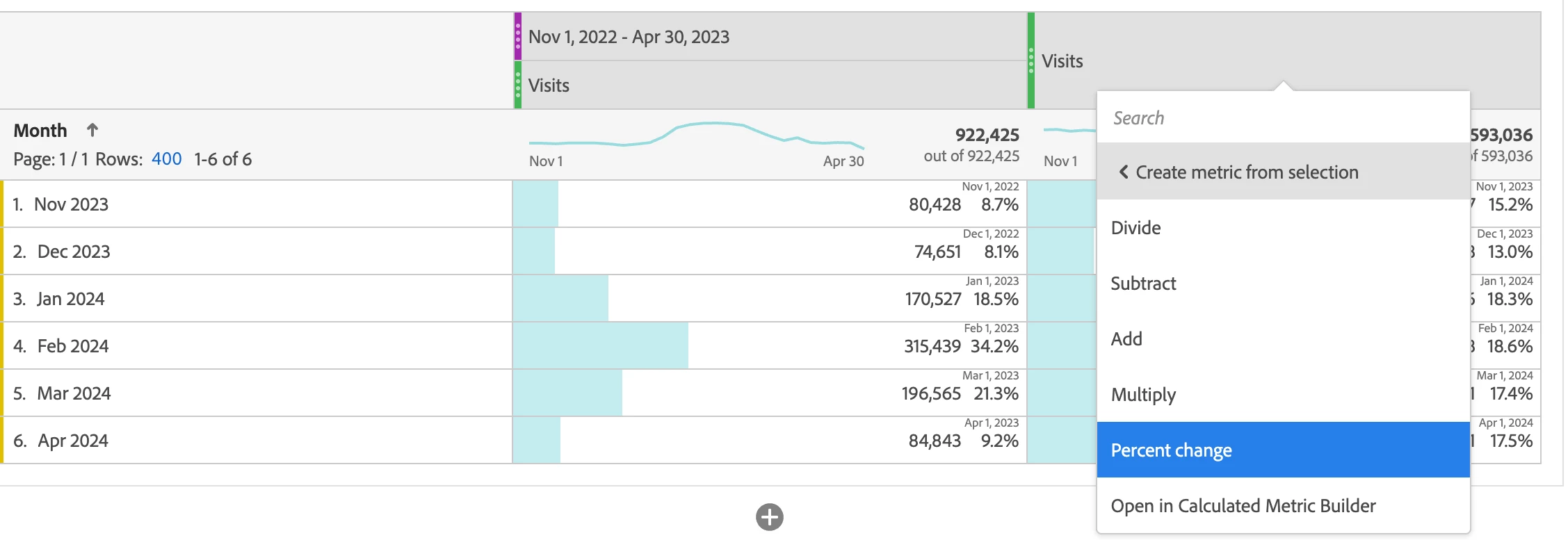 Can you please select Visits from both column and then right click.