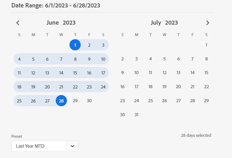 For eg: On 28th June I want to check MTD data, then it should take data upto 27th but it's taking data till 22nd June only.