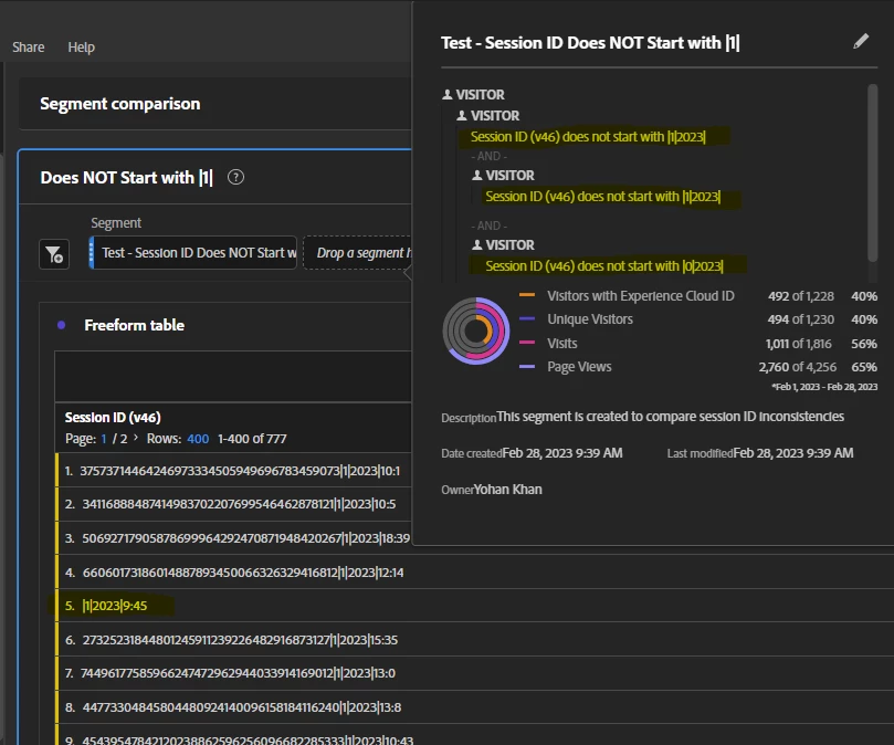 - VISITOR: Exclude "starts with x" means that any visitors that have ever met that criteria are fully excluded from the segment (including the hits where it populated correctly)