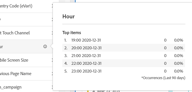 The Previous URL/Page Name show no data in Workspace.