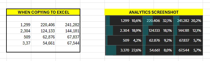 When I copy data from a Workspace table and try to paste it into Excel it is not pasting correctly. It seems to paste percentages instead of the raw number.