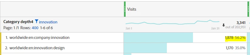 Workspace flow visualization - data difference with page visits number