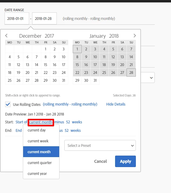 - current date range