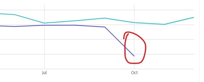 I am trying to set up a year over year comparison of Visits. With the dimension either being Week or Month, I want to show, for example all of 2021, but then for 2022, rather than the line dropping to 0 for November and December, is there a way that the line just ends at where it currently is, so we don't see a huge drop until time catches up?
