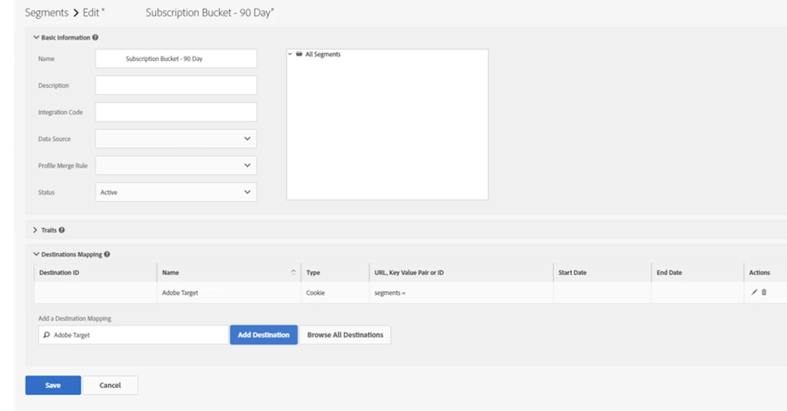 4. Once the segments are in place, they need to be sent over to Adobe Target for personalization and targeting. This is done by mapping the segments with the destinations. This can be done in two ways– via Destinations or Segments.