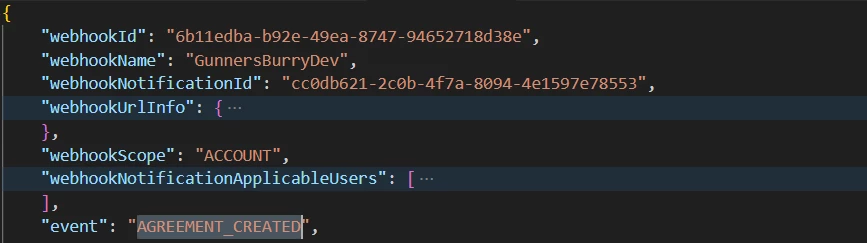 I have created a webhook for all Agreement related events but I'm always receiving payload event as