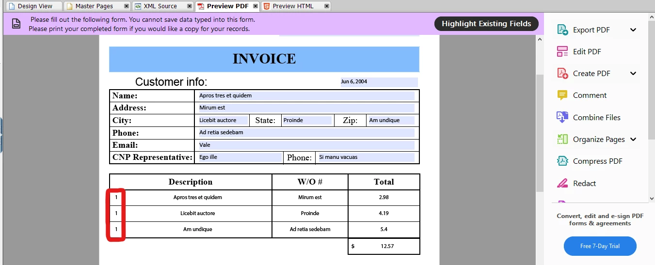 I'm creating a fillable form which also has a dynamic table. I was able to create the dynamic table with no problems, this table contains a cell to display the index row.