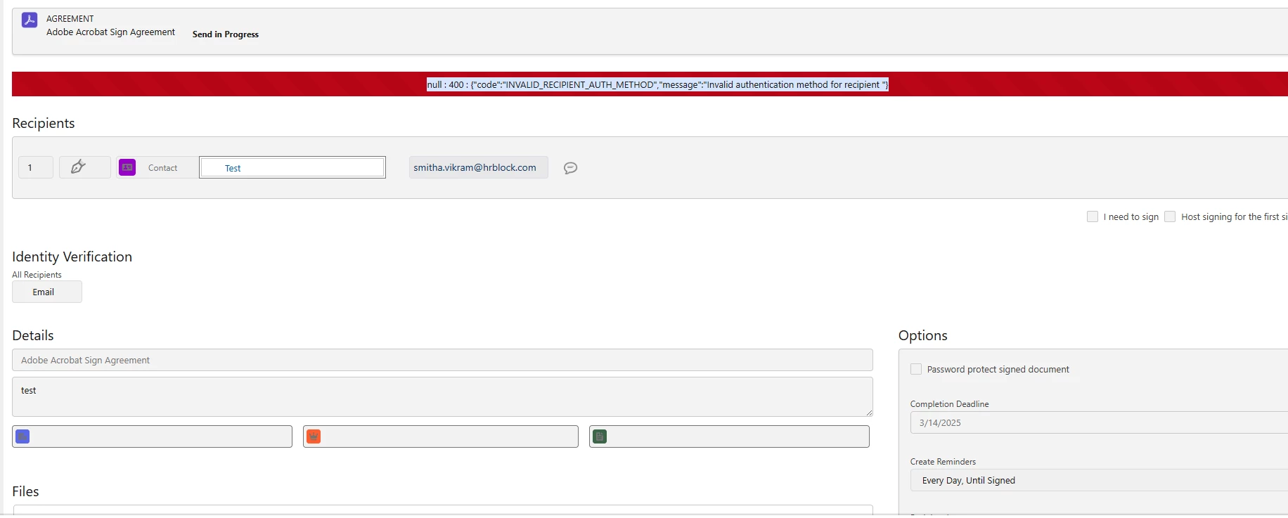 Invalid Recipient Auth Method Error When Sending Agreements via Apex