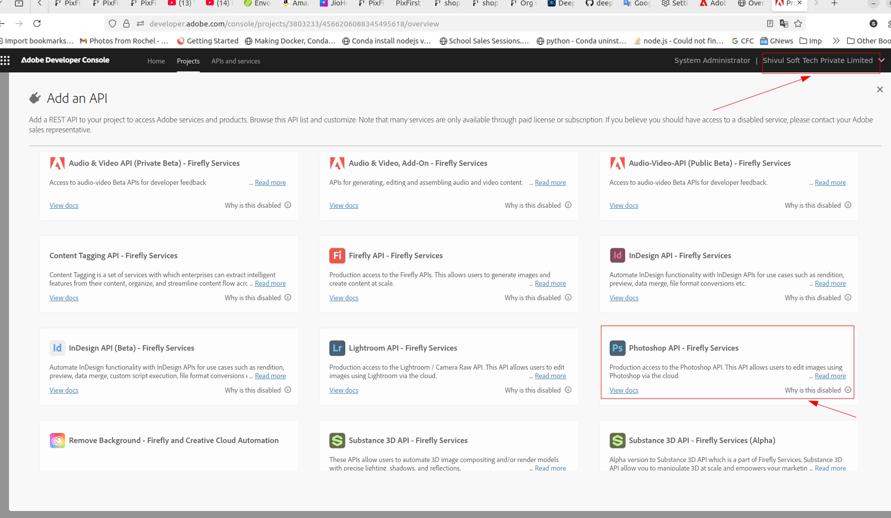 | I am not able to add the service when I create a project in developer.adobe.com |