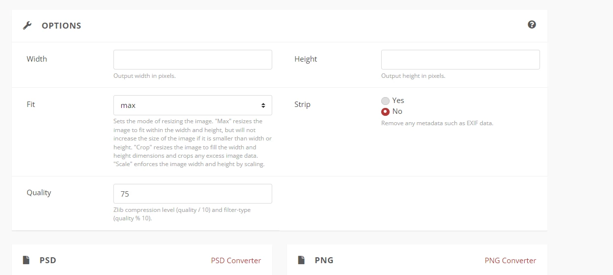 Okay - so I realise online there are a number of PSD to PNG convertors where you upload your source file, type in the size properties etc and it will create a PNG to your specs (Similar to the below).