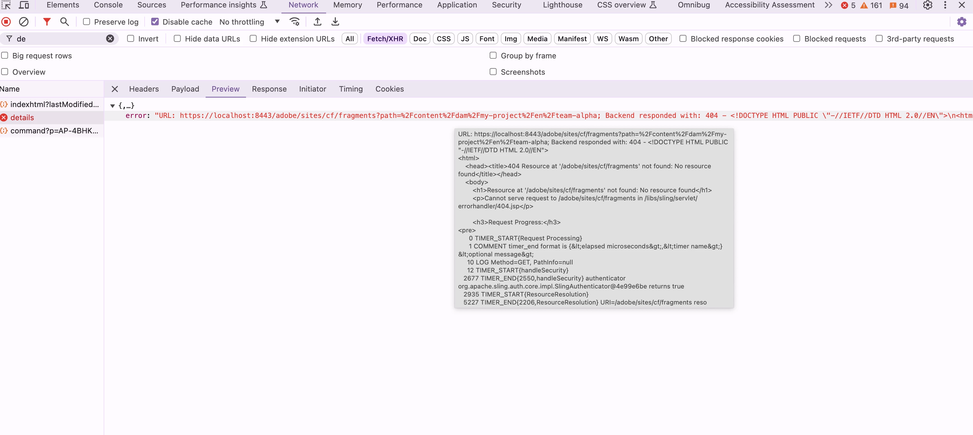 When I am switching to properties trail tab - i am seeing below error - detail api call is failing