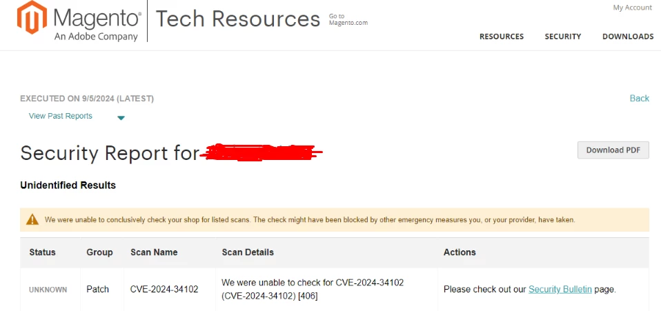 We were unable to check CVE-2024-34102 - Adobe Magento Security Scan