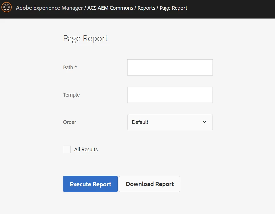 I am trying to get a list of all live URLs using ACS common report feature. For Page Report for a site, what should be the path field?
