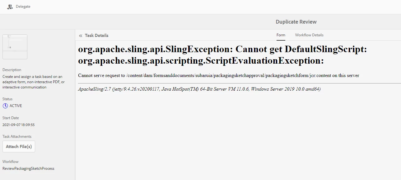 Assign Task Step Not Working: org.apache.sling.api.SlingException: Cannot get DefaultSlingScript: org.apache.sling.api.scripting.ScriptEvaluationException