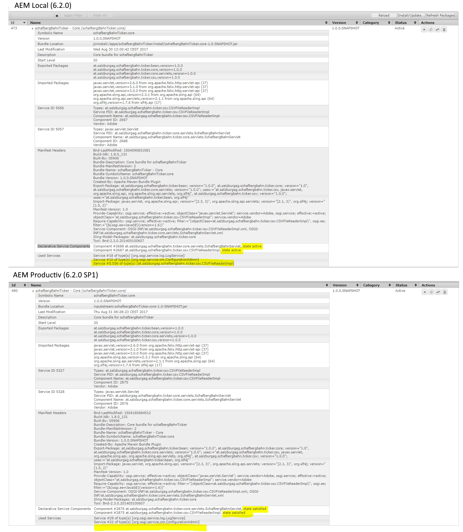 2. Declarative Service Components are in state "satisfied" at productive environment
