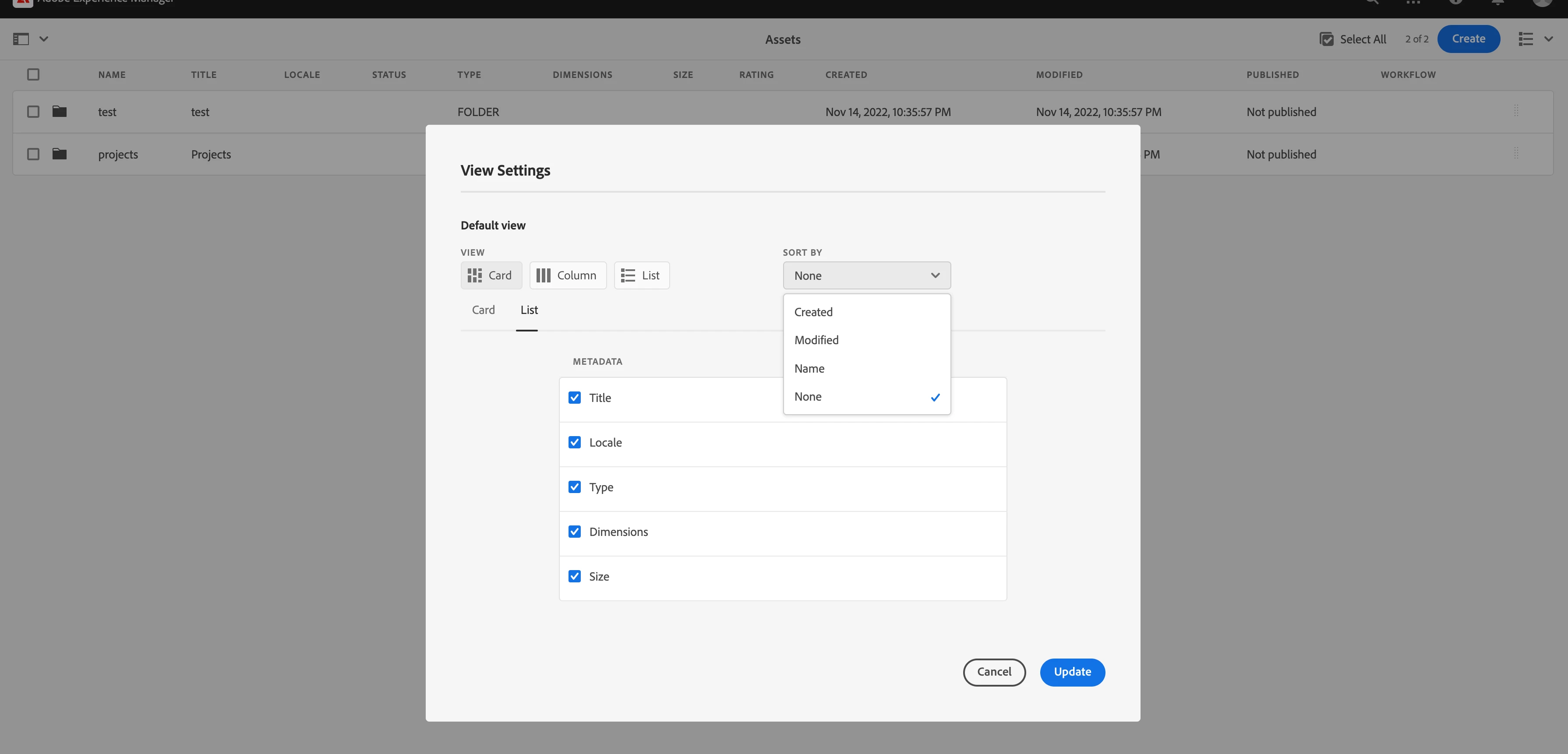 You only have few metadata on which you can sort OOTB on author . For sorting on any other filter , you would need customization. Check logic here : /libs/granite/ui/components/shell/collectionpage/viewsettings