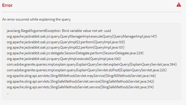 *WARN* [FelixStartLevel] org.apache.jackrabbit.oak.plugins.index.elastic.ElasticIndexProviderService The Elastic cluster at https://elasticsearch-master:9200/cm-p54903-e364010-author is not reachable. The index cleaner job has not been enabled *WARN* [FelixStartLevel] org.apache.jackrabbit.oak.plugins.index.elastic.ElasticConnection Error checking connection for https://elasticsearch-master:9200/cm-p54903-e364010-author, message: elasticsearch-master: Name or service not known *ERROR* [FelixLogListener] com.adobe.cq.dam.cfm.graphql.ContentFragmentPlugin bundle cq-dam-cfm-graphql:0.0.252 (189)[com.adobe.cq.dam.cfm.graphql.ContentFragmentPlugin(361)] : The bindGraphqlOptimizationToggleNotifier method has thrown an exception (java.lang.NullPointerException) *ERROR* [FelixLogListener] com.adobe.cq.dam.cfm.graphql.ContentFragmentPlugin bundle cq-dam-cfm-graphql:0.0.252 (189)[com.adobe.cq.dam.cfm.graphql.ContentFragmentPlugin(361)] : The bindGraphqlOptimizationToggleNotifier method has thrown an exception (java.lang.NullPointerException) *ERROR* [FelixStartLevel] com.adobe.fmdita.rest.folderprofiles.FolderProfilesAPI Error in initializing trie for folder profiles *WARN* [68.234.79.146 [1680695887267] GET /mnt/overlay/granite/ui/content/shell/omnisearch/searchresults/singleresults/searchpanel.asset.html HTTP/1.1] com.day.cq.wcm.core.impl.page.PageImpl page at /conf/global/settings/dam/search does not have a jcr:content childresource 05.04.2023 11:58:07.390 [cm-p54903-e364010-aem-author-85f4fcb7df-955wb] *WARN* [68.234.79.146 [1680695887267] GET /mnt/overlay/granite/ui/content/shell/omnisearch/searchresults/singleresults/searchpanel.asset.html HTTP/1.1] com.day.cq.wcm.core.impl.page.PageImpl page at /conf/global/settings/dam/search does not have a jcr:content childresource 05.04.2023 11:58:07.485 [cm-p54903-e364010-aem-author-85f4fcb7df-955wb] *ERROR* [68.234.79.146 [1680695887267] GET /mnt/overlay/granite/ui/content/shell/omnisearch/searchresults/singleresults/searchpanel.asset.html HTTP/1.1] org.apache.sling.servlets.get.impl.DefaultGetServlet No renderer for extension html, cannot render resource JcrNodeResource, type=nt:unstructured, superType=null, path=/conf/global/settings/dam/search/facets/assets/jcr:content/items/channels 05.04.2023 11:58:07.527 [cm-p54903-e364010-aem-author-85f4fcb7df-955wb] *WARN* [68.234.79.146 [1680695887267] GET /mnt/overlay/granite/ui/content/shell/omnisearch/searchresults/singleresults/searchpanel.asset.html HTTP/1.1] com.day.cq.wcm.core.impl.page.PageImpl page at /conf/global/settings/dam/search does not have a jcr:content childresource