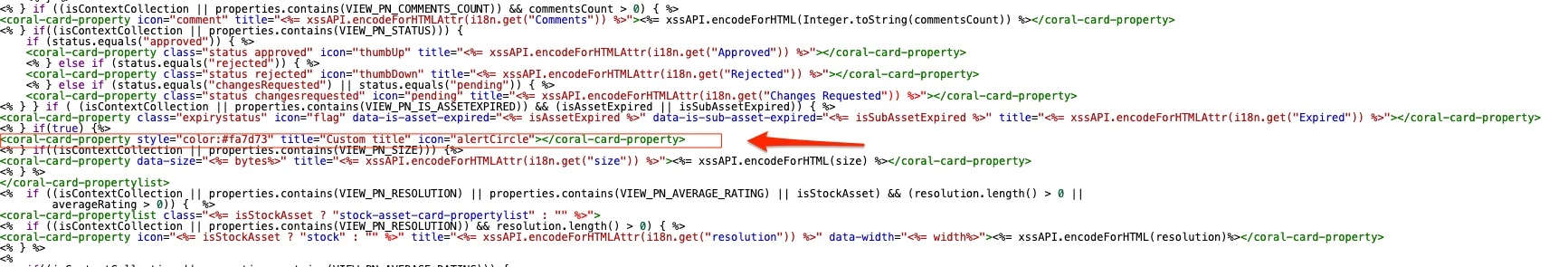 I have read that there are more icons, but i do not know which, where to find them and if there already is something like a red exclamation mark for example, how to make the AEM to show this icon on assets that have the metadata xmpRights:WebStatement