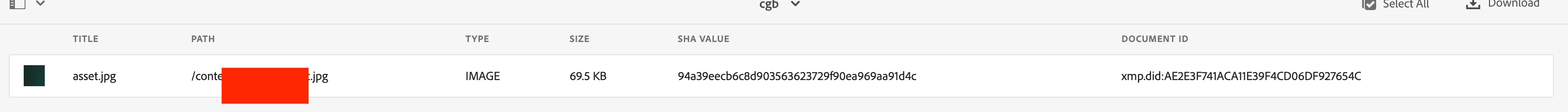 I want to run a report of assets in a folder with custom columns for the metadata properties dam:sha1{{String}} and xmpMM:DocumentID{{String}}. I can see these columns and their values when I export all metadata of a folder, but due to a large volume of assets I don't want to export all metadata. What would I enter into the 'Property to Map' field to get these values in my report?