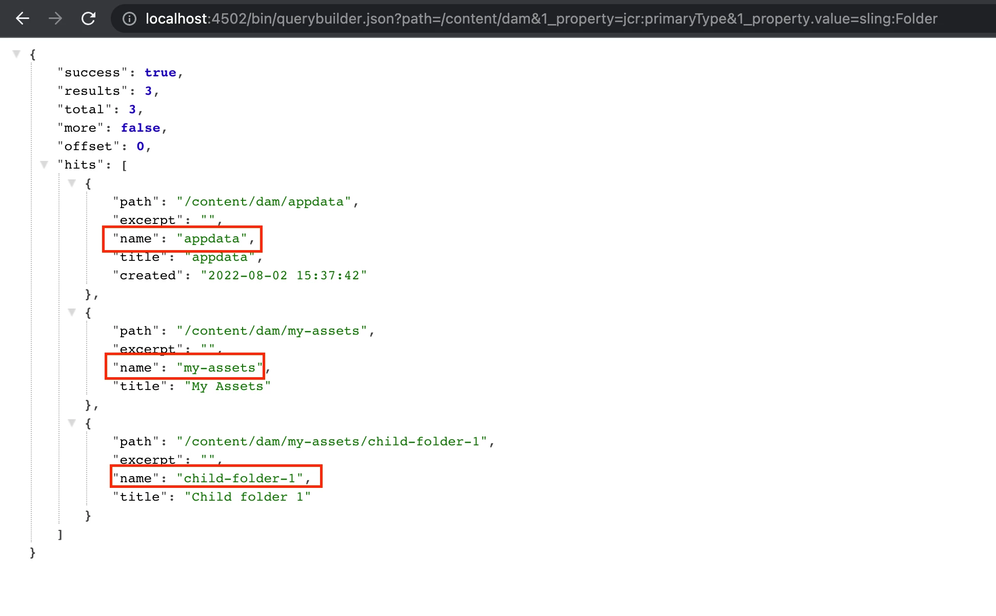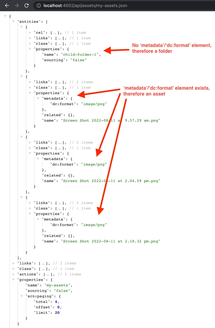 I am trying filter the content of adobe aem assets api to get only folders and skip files to check whether parent folder have any sub folder.