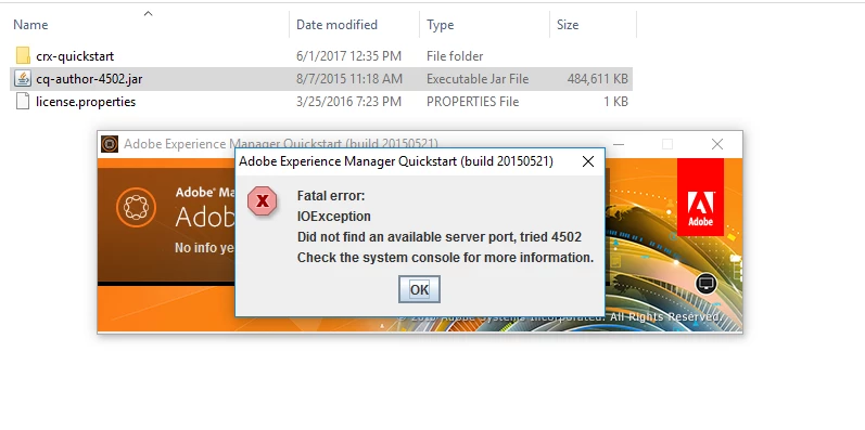i am trying to start "cq-author-4502.jar" AEM6.1 , giving below Fatal error
