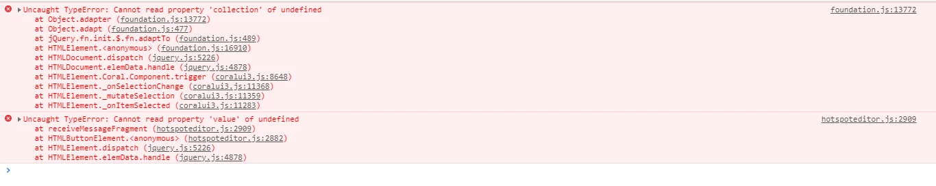 Out of the above 3, Experience Fragment does not seem to work in our QA, Stage and Production environments. The issue which we are facing is while trying to select Experience Fragment using pathbrowser, below is the js error in browser console.
