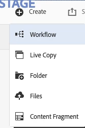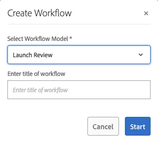 2. Select Launch Review for folder or asset from 'Create Workflow' drop down