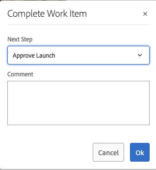 5. Complete work item and Approve Launch