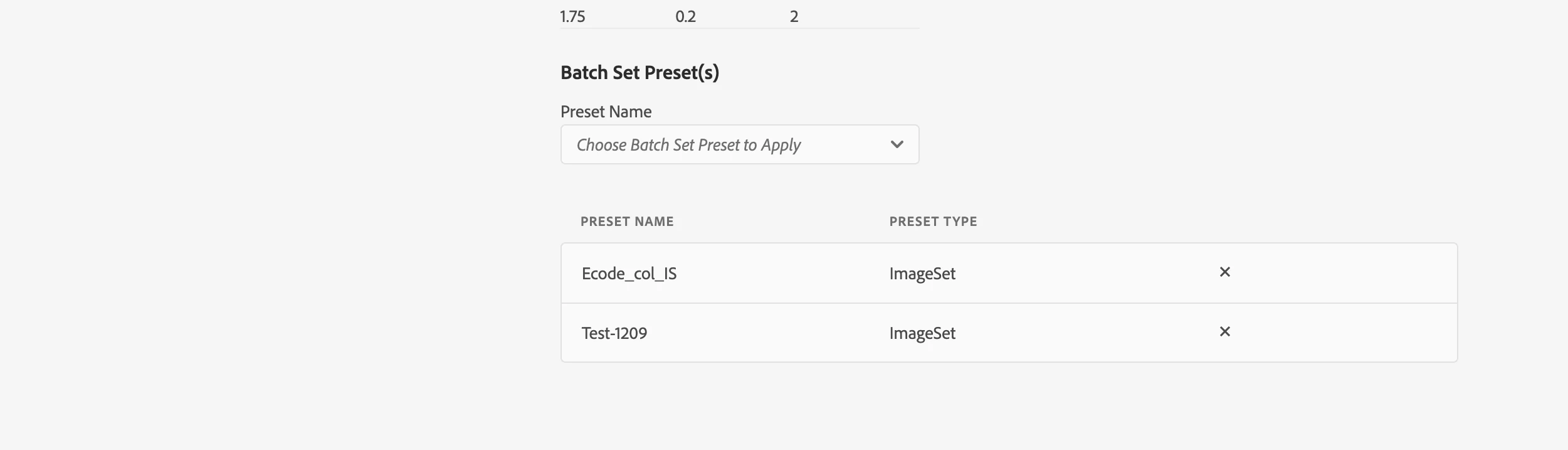 Detailed information available here : https://experienceleague.adobe.com/docs/experience-manager-cloud-service/content/assets/dynamicmedia/batch-set-presets-dm.html?lang=en