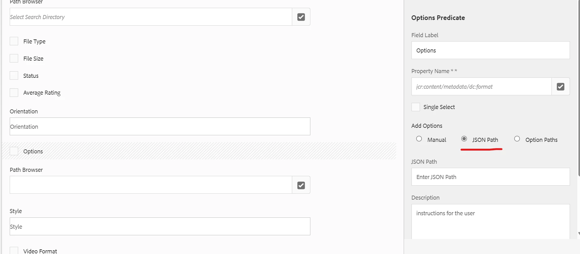 Did anyone faced an issue while using JSON path option for search facets predicates and resolved ? When I am using JSON path for any predicate then that predicate gets disappeared in search rail. Is there any template of this JSON?