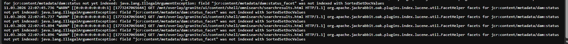 WARN: Lucene Facet "dam:status" Not Indexed with SortedSetDocValues on Omnisearch Filter