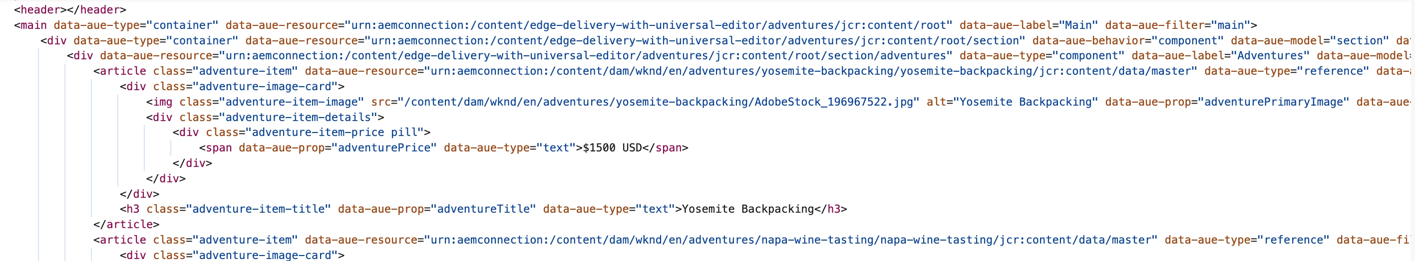 When I edit a page on Universal Editor, the source code of my page looks like this: