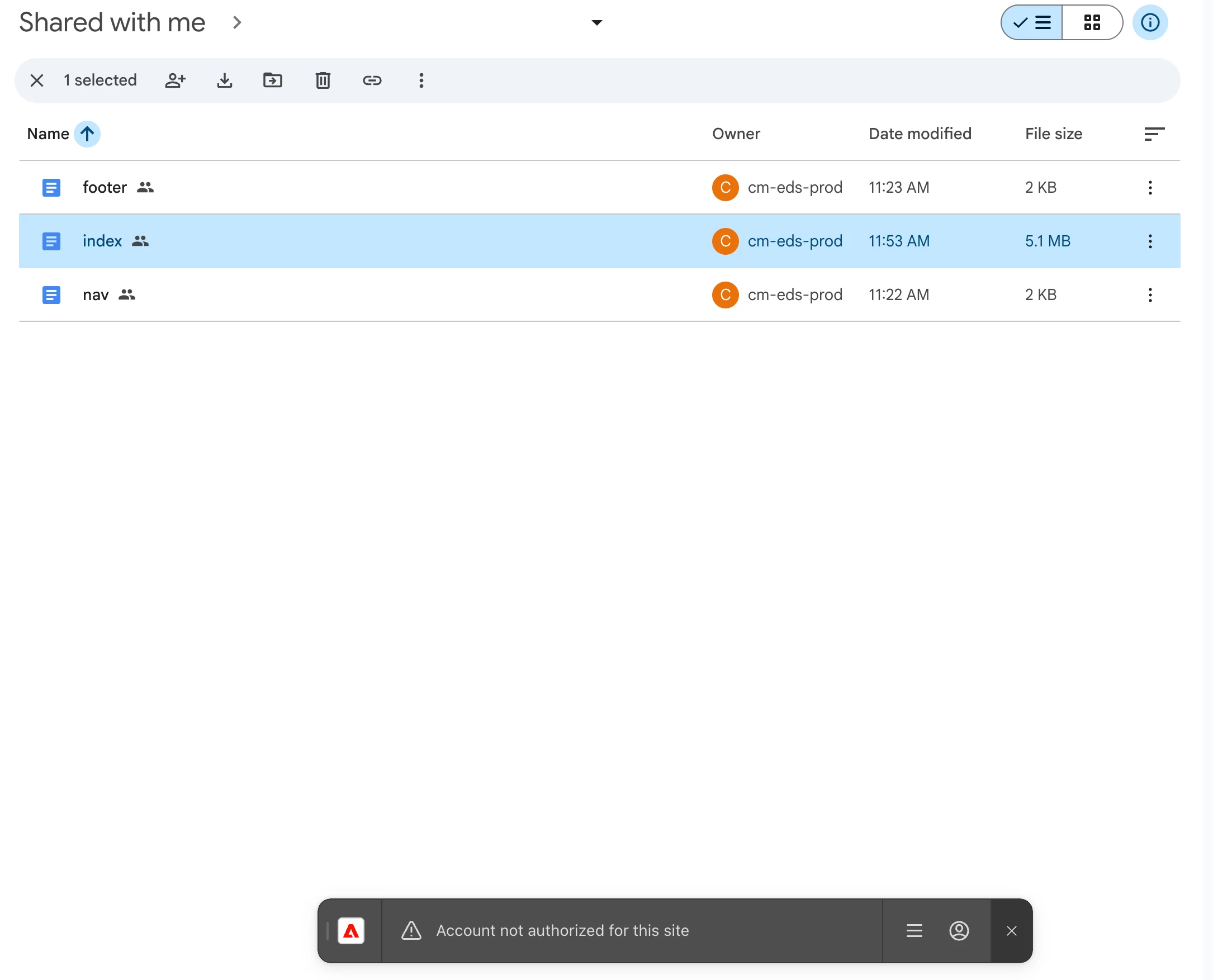 We are working in a PoC over EDS but, following the aem.live tutorials and working on our sandbox (Cloud Manager) we have arrived to an issue we are not able to deal with: I created the project with my account (Cloud Manager, let’s say xxx@xxx.com) and obtained this (image attached) error: