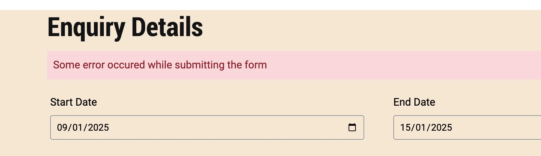 - Now while submitting its showing error and submit option not working as expected