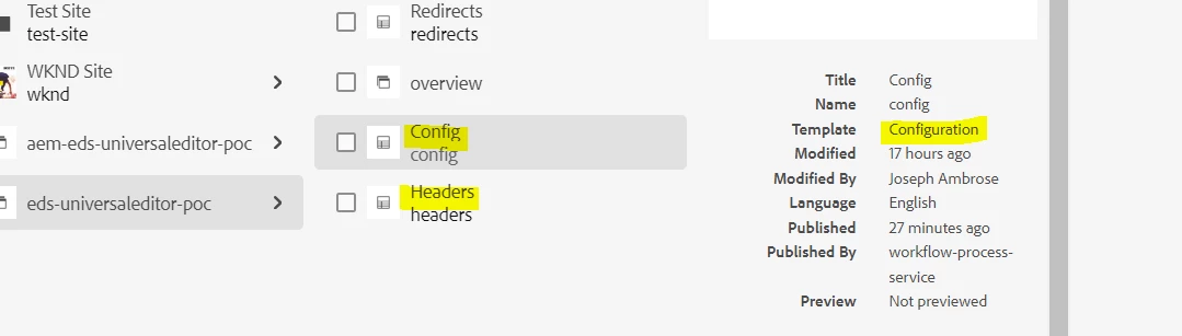 I created an EDS site using the "AEM Site with Edge Delivery Services Template 0.0.16" and set up configurations and headers within it. The paths.json file in the repository has the necessary mappings. I can access the Helix config via https://main--***.aem.page/config.json, but any updates made and republished do not show up in the config.json. Additionally, when attempting to load headers.json via https://main--**.aem.page/headers.json, I receive a 404 error. Please see the screenshots.