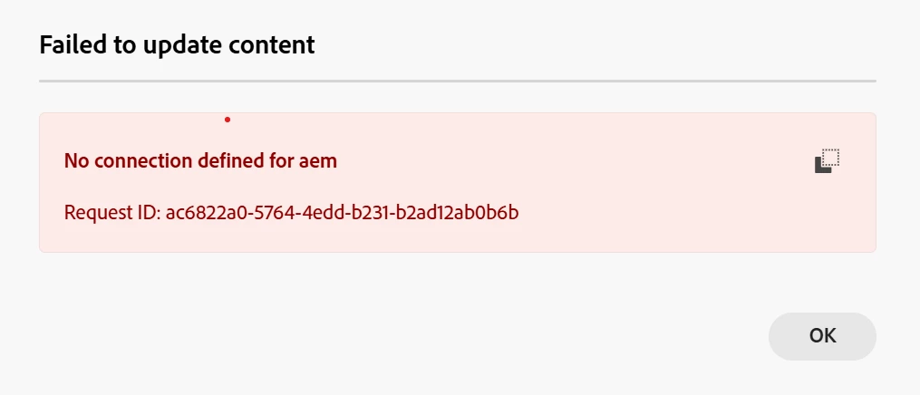 Error & AEM connection details