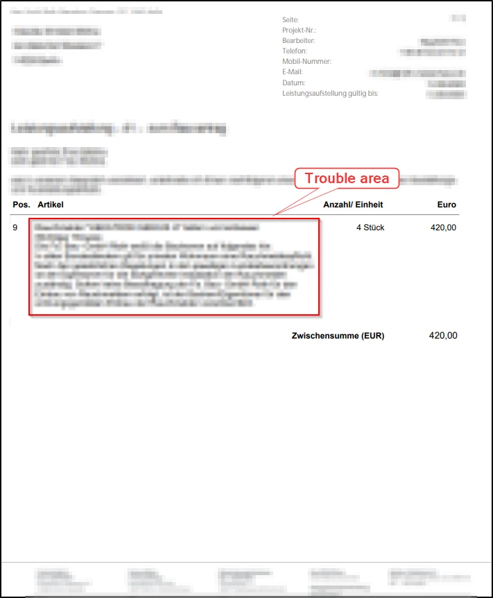 I'm experiencing some trouble concerning page breaks: I created an invoice form that has a dynamic table and data bindings that fill up the cells. So far so good.