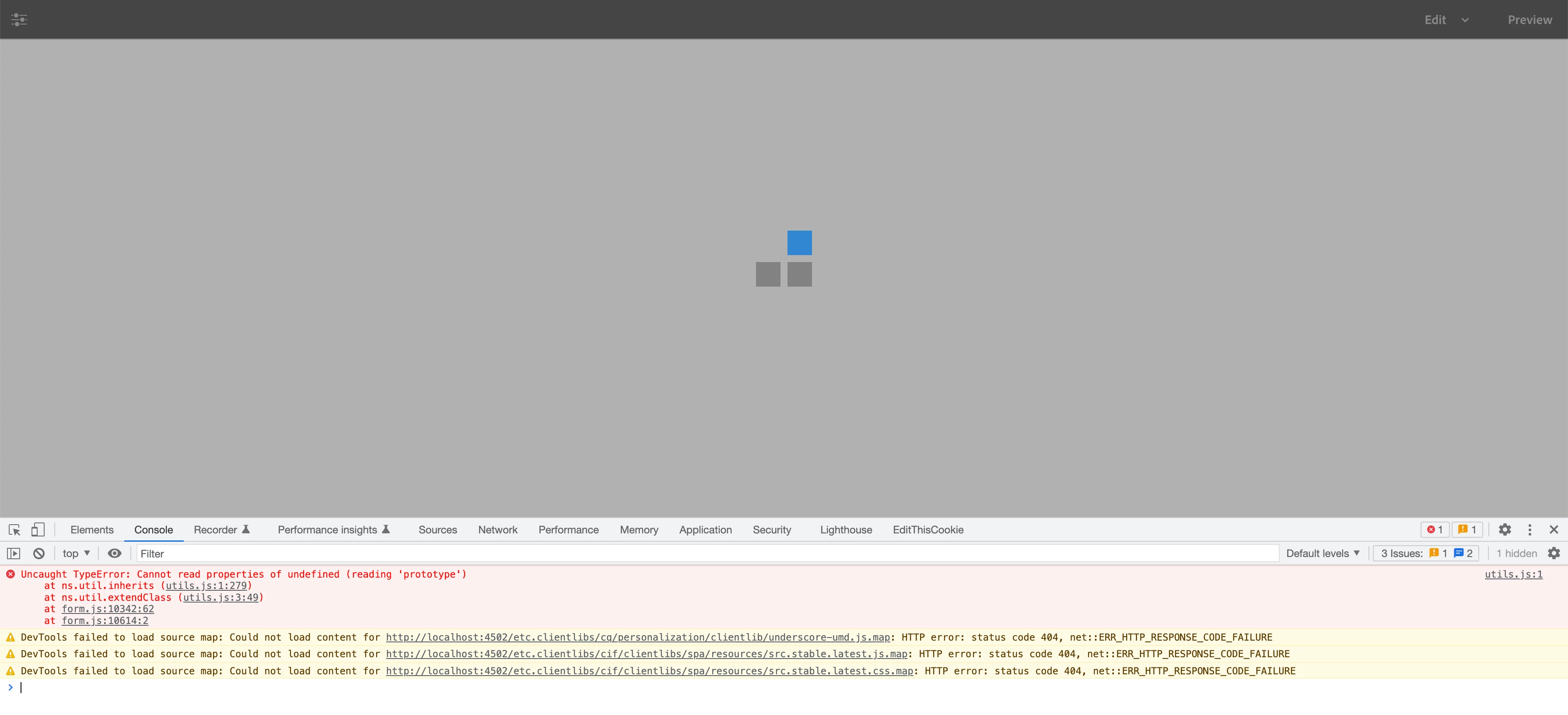 And there are a lot or errors in console related to underscore library  :