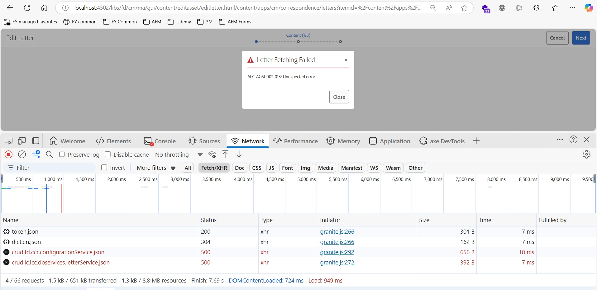 ALC-ACM-002-013: Unexpected error - Letter Correspondence Management